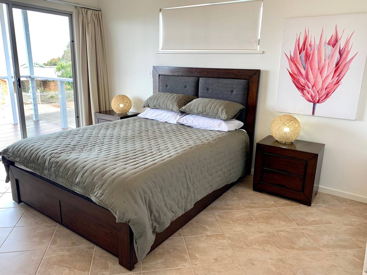 A two storey, modern 4 bedroom home overlooking beautiful Nepean Bay. Only a five minute walk to the beach or take the foreshore walking trail in to the township of Kingscote. Complimentary WIFI, coffee pod machine, BBQ & reverse cycle air-conditioning to make it home away from home. Relax with the whole family at this gorgeous holiday home.