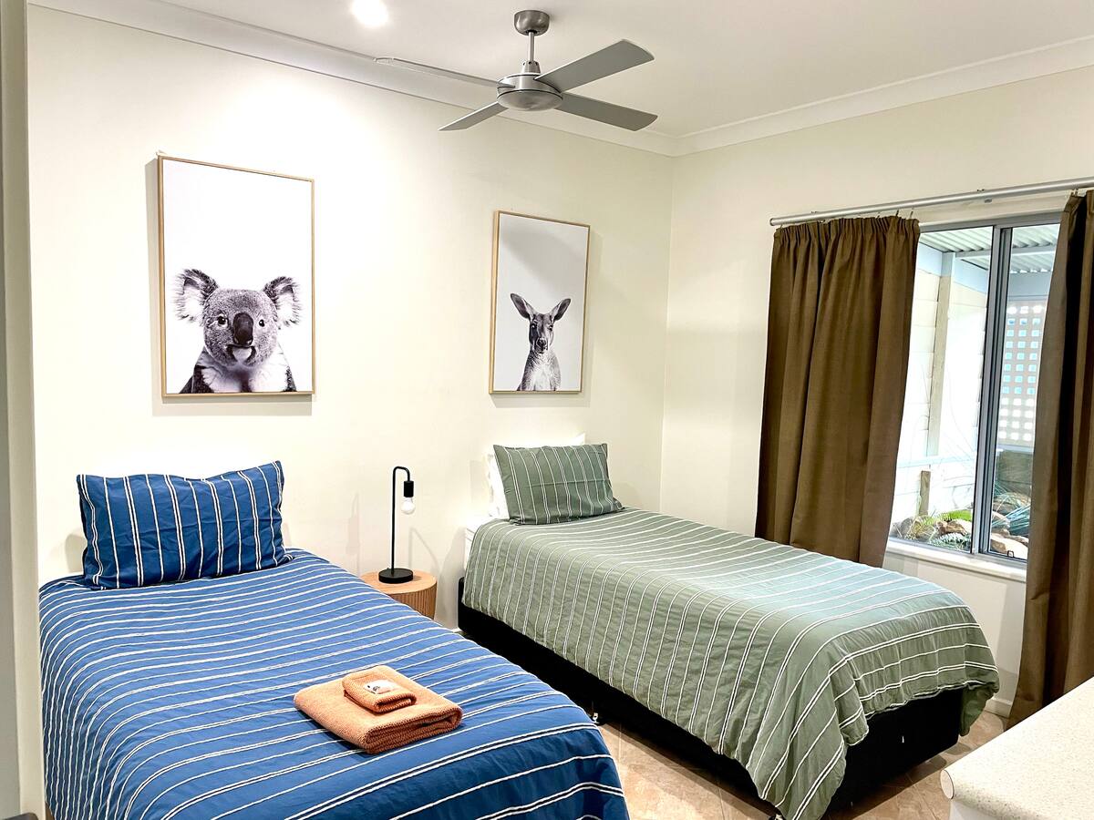 Third bedroom: 2 singles or can convert to a king bed